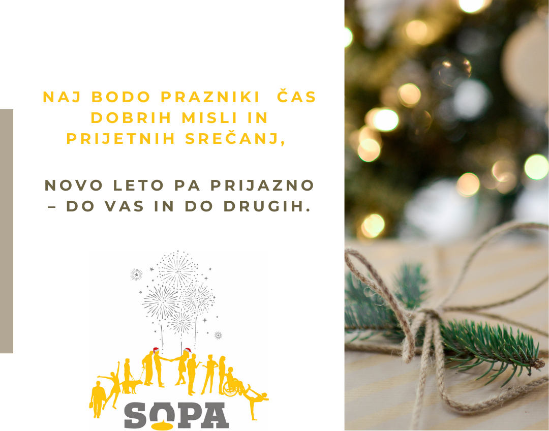 Verjamemo, da se trajne spremembe rojevajo v odnosih – do sebe in drugih – ter v podpori, razumevanju in sodelovanju. V središču delovanja SOPA so ljudje in skupno ustvarjanje varnega, podpornega prostora. Ob koncu leta se vam zahvaljujemo za zaupanje in skupne vrednote ter vam želimo mirne, tople praznike in prijazno novo leto, polno ravnovesja, zdravja in upanja.