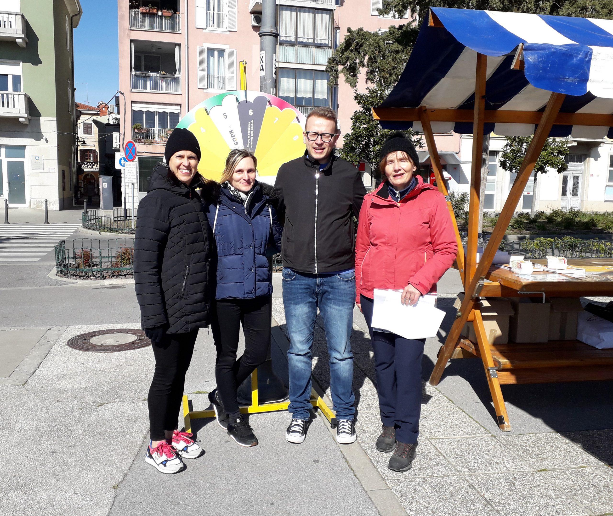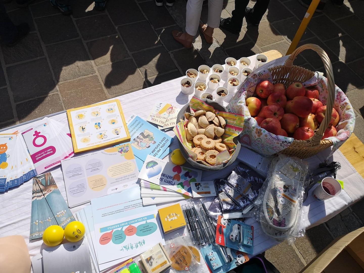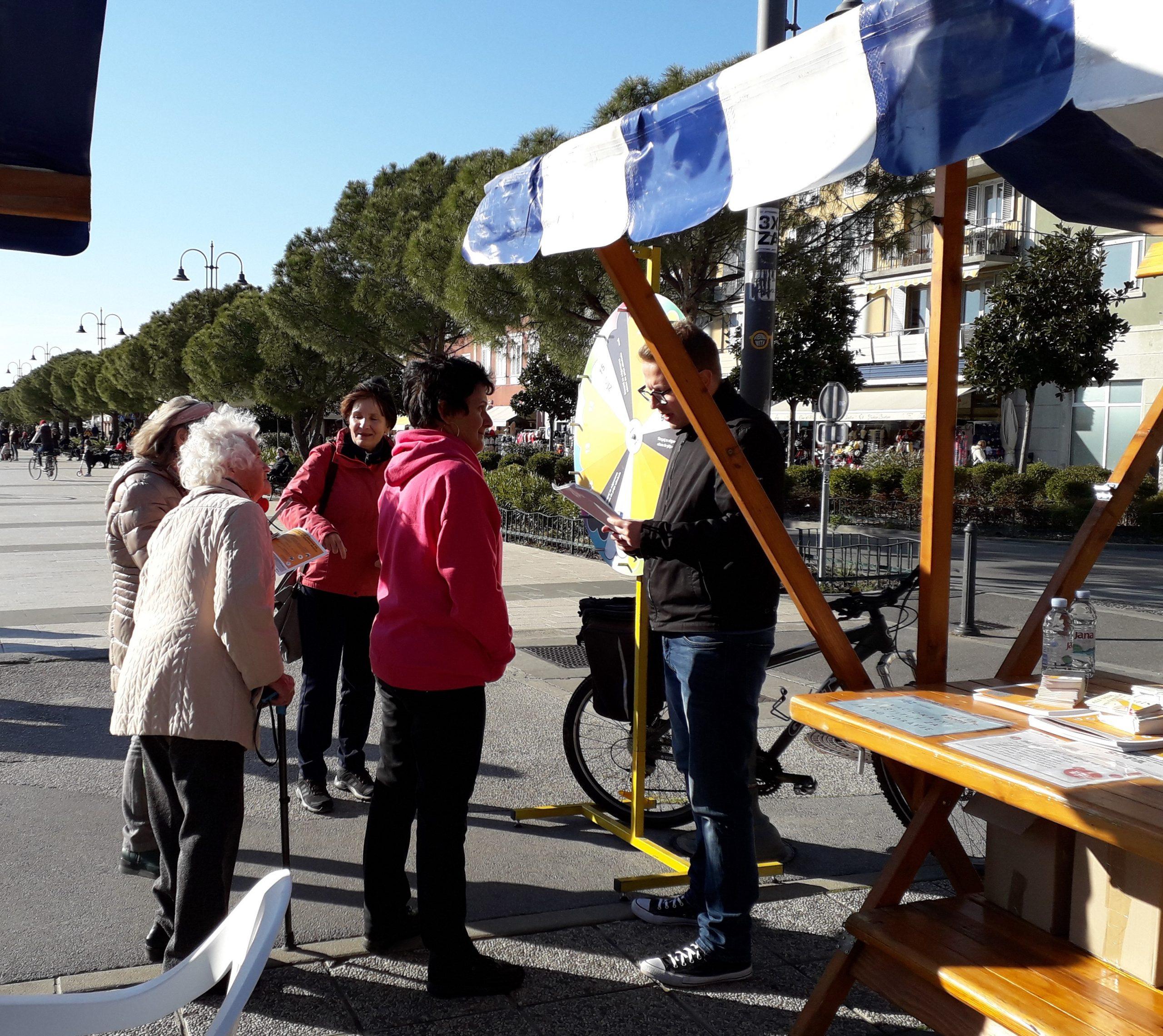 Naši NIJZ sodelavki Irena Jerič in Ana Peršič sta združili moči s Centrom za krepitev zdravja – ZD Izola in k sodelovanju povabili številne organizacije in društva, ki delujejo v lokalnem okolju. Policijska postaja Izola, Društvo zdravljenih alkoholikov Obala, Združenje Europa Donna Slovenija, podružnica Obala, Rdeči križ Slovenije – Območno združenje Izola, Medgeneracijski center Izola, Univerza za tretje življenjsko obdobje Izola, Društvo prijateljev mladine Izola, Osnovna šola Livade Izola, Turistično in kulturno društvo Šparžin – Korte ter Društvo Šola zdravja Obala so se z obiskovalci pogovarjali o zdravih življenjskih izbirah in predstavili vire pomoči ter možnosti podpore pri opuščanju nezdravega življenjskega sloga.