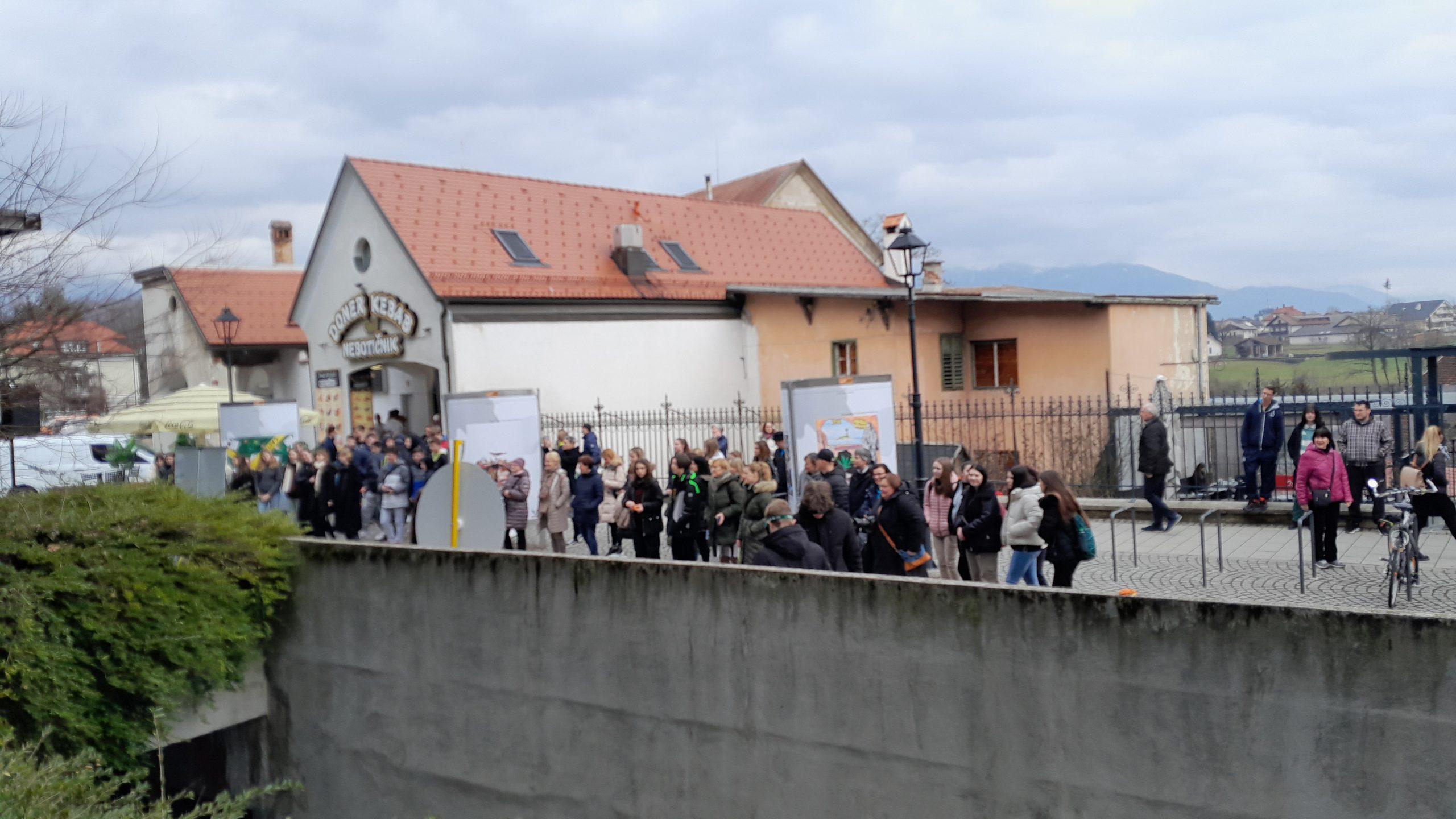 Vrhunec dogodka in največji obisk se je zgodil po 11:00, ko se je ploščad napolnila z dijaki in profesorji kranjskih srednjih šol, uslužbenci MO Kranj in obiskovalci knjižnice, ki so pričakali udeležence teka ob otvoritvi razstave Stop zasvojenosti. Na dogodku je bil kot organizator in predstavnik NIJZ-ja prisoten naš sodelavec Rok Zaletel.