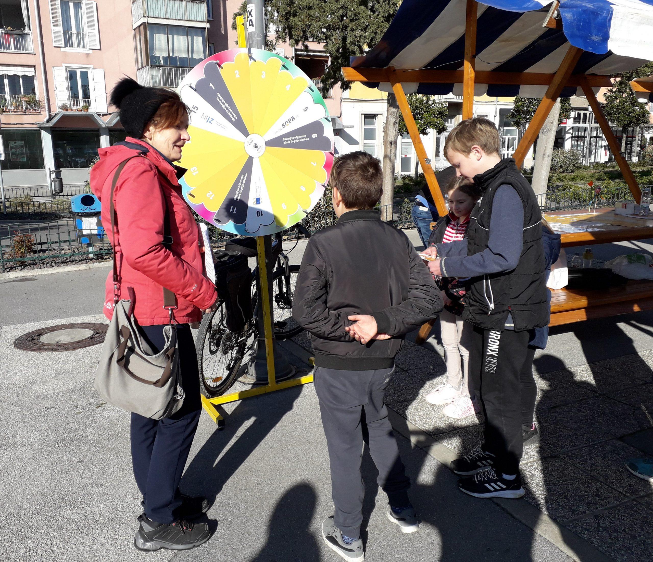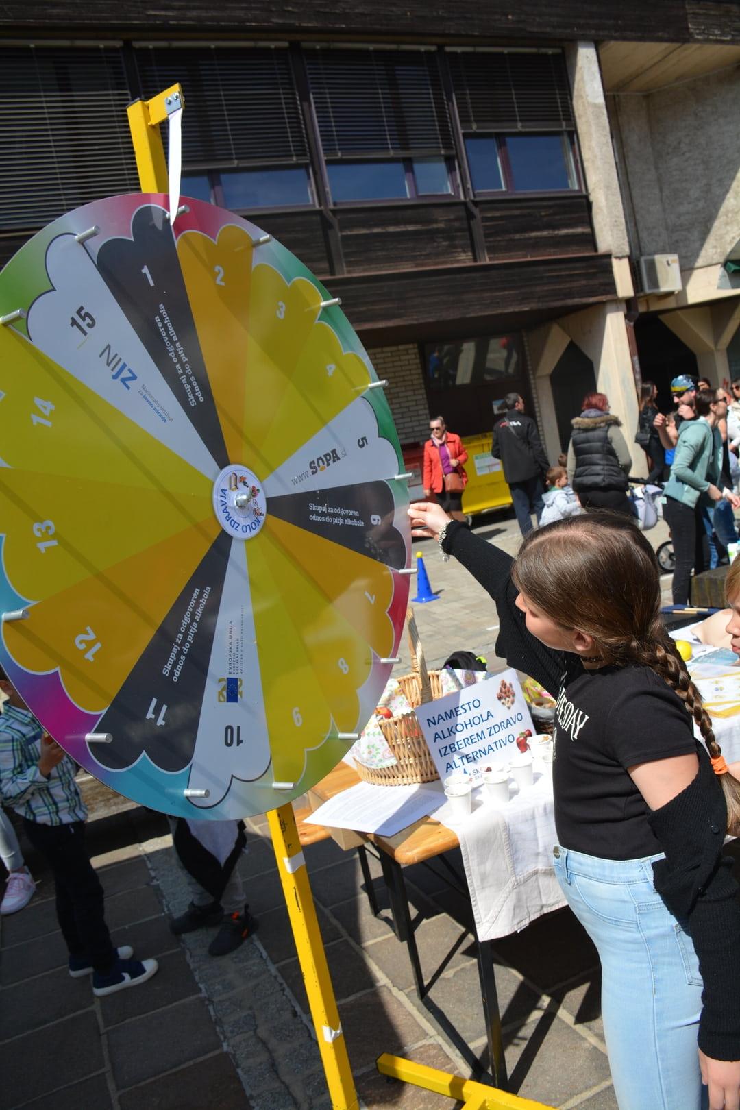 Na dogodku smo se pogovarjali o zdravih življenjskih izbirah v našem vsakdanu in predstavili vire pomoči in možnosti podpore pri opuščanju nezdravega življenjskega sloga. Vsako leto ugotavljamo tudi, da so obiskovalci presenečeni nad statistikami glede pitja alkohola v Sloveniji, prav tako nad miti, ki jih razbijamo preko sproščene igre »kolo sreče« na temo alkoholne problematike.