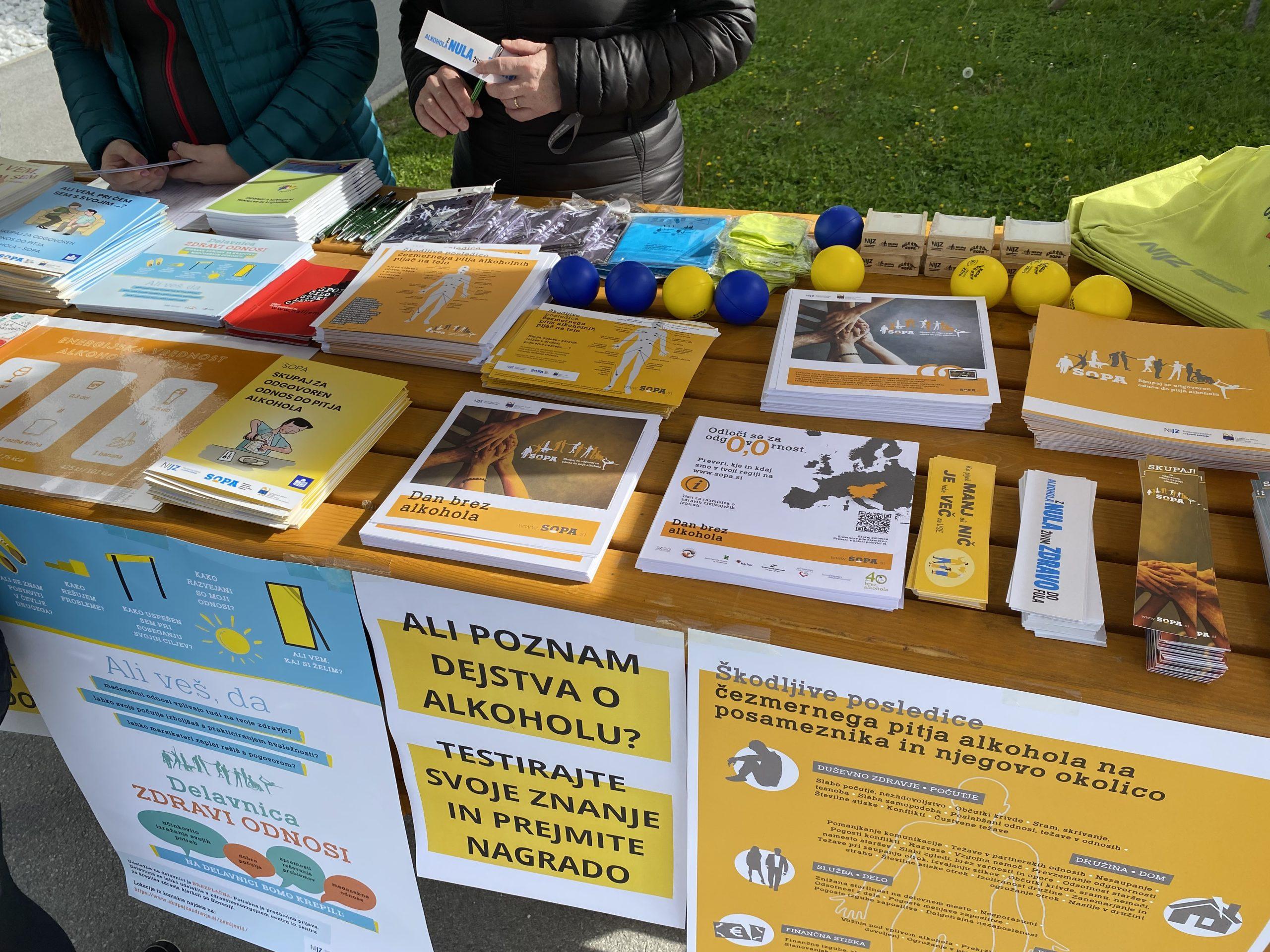 Na dogodku smo se pogovarjali o zdravih življenjskih izbirah v našem vsakdanu in predstavili vire pomoči in možnosti podpore pri opuščanju nezdravega življenjskega sloga. Vsako leto ugotavljamo tudi, da so obiskovalci presenečeni nad statistikami glede pitja alkohola v Sloveniji, prav tako nad miti, ki jih razbijamo preko sproščene igre »kolo sreče« na temo alkoholne problematike. Med miti, ki jih ovržemo, je tudi ta, da je alkohol dober za kri.