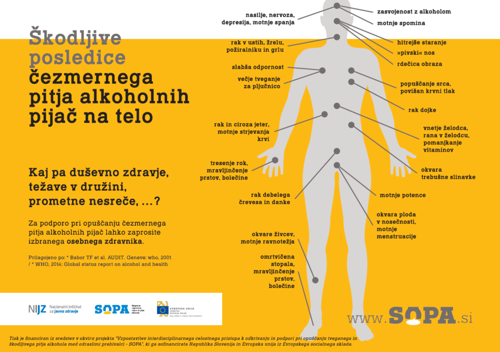 Alkohol je glavni preprečljivi dejavnik tveganja za nastanek kroničnih nenalezljivih bolezni, poškodb in za pojav nasilja (IVZ, 2010). Novejše raziskave dokazujejo tudi vzročno povezavo med škodljivo rabo alkohola in nalezljivimi boleznimi, kot sta tuberkuloza in okužba s HIV/aids (WHO, 2014).