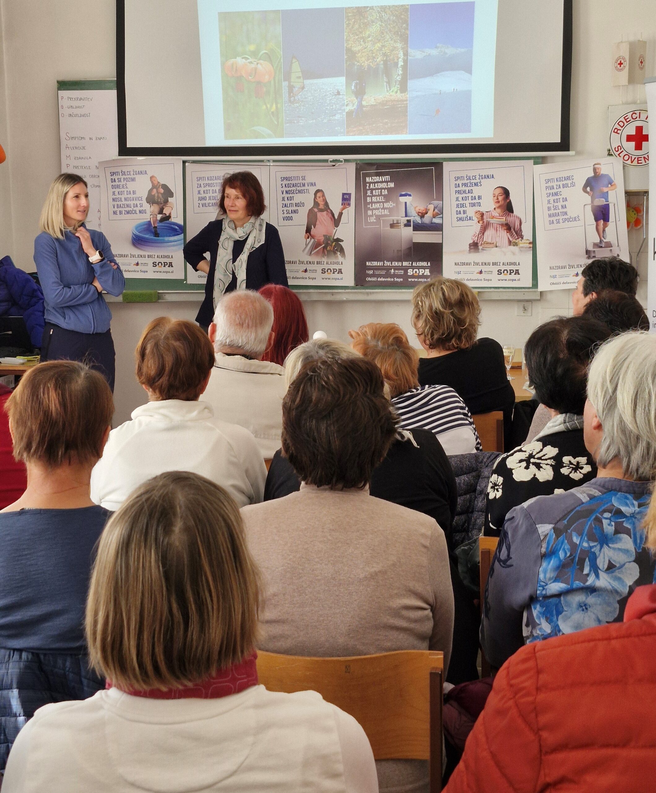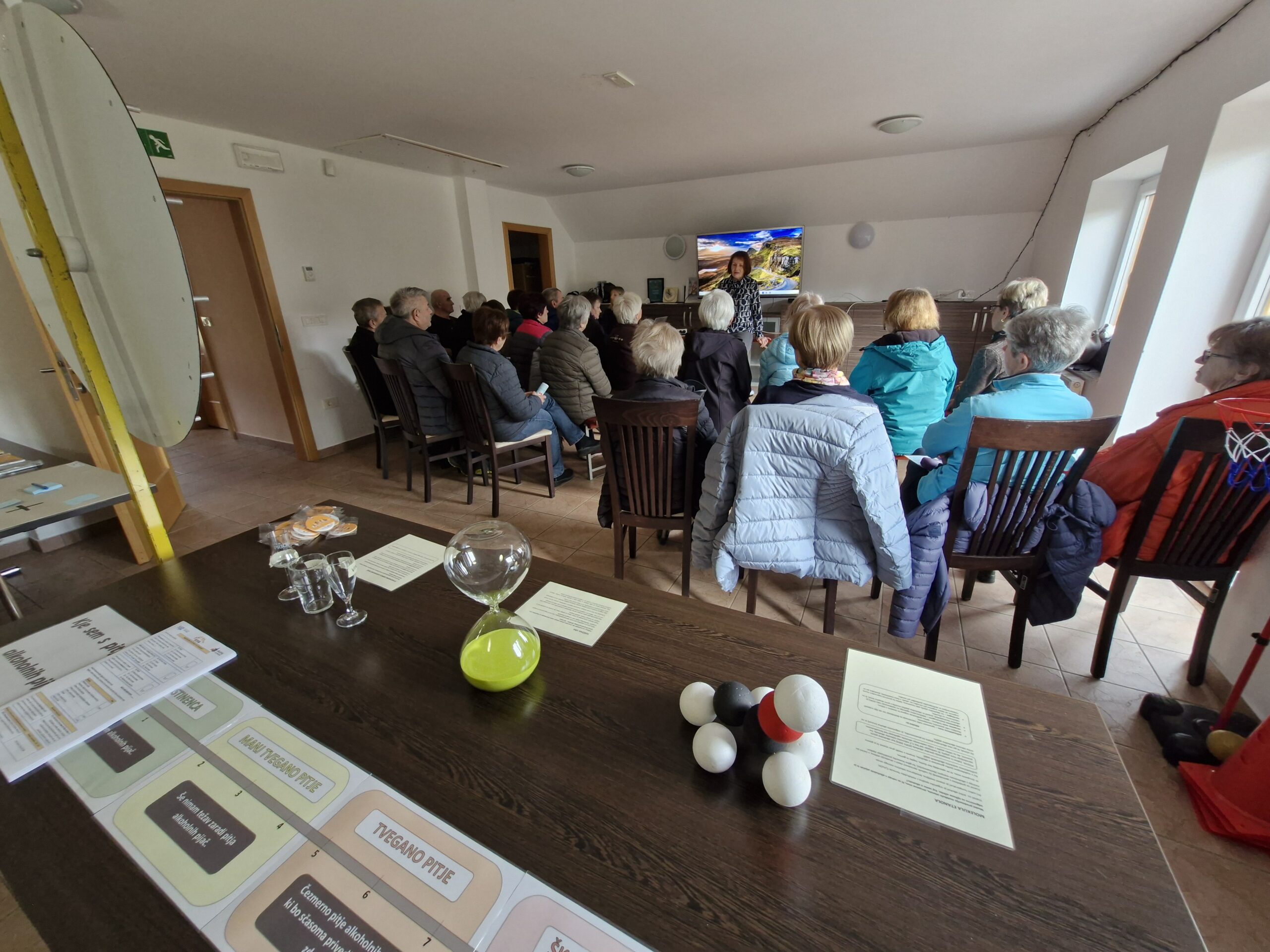 Uvodno predavanje o duševnem zdravju, je udeležencem pomagalo razumeti, da so težave s stresom, tesnobo in depresijo, lahko tesno povezane tudi s tveganim in škodljivim pitjem alkoholnih pijač. Udeleženke so odkrito delile tudi osebne izkušnje. Ena izmed njih je povedala, da je depresijo premagala s hojo v hribe – na Tolminskem jih res ne manjka – in s tem navdihnila razmislek o zdravih načinih soočanja s stiskami.