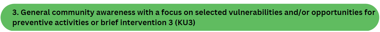 In addition, the so-called brief intervention 3 (KU3), or motivational informing and awareness-raising about alcohol-related issues and sources of help for groups of people who may be particularly vulnerable (e.g. unemployed, blind or visually impaired, deaf or hearing-impaired, struggling with mental health, etc.) and deal with special circumstances (e.g. sports and culture), is carried out, primarily through the integration of awareness-raising content into the regular activities of non-governmental organizations in the fields of selected vulnerabilities and employment offices. For most of the selected fields, we have defined an educational module and carried out training for practitioner and pilot-implemented and evaluated the measure in the project. For some fields, we have prepared special awareness-raising materials. We prepared a Handbook for practicing the measure in 10 special vulnerabilities/circumstances.