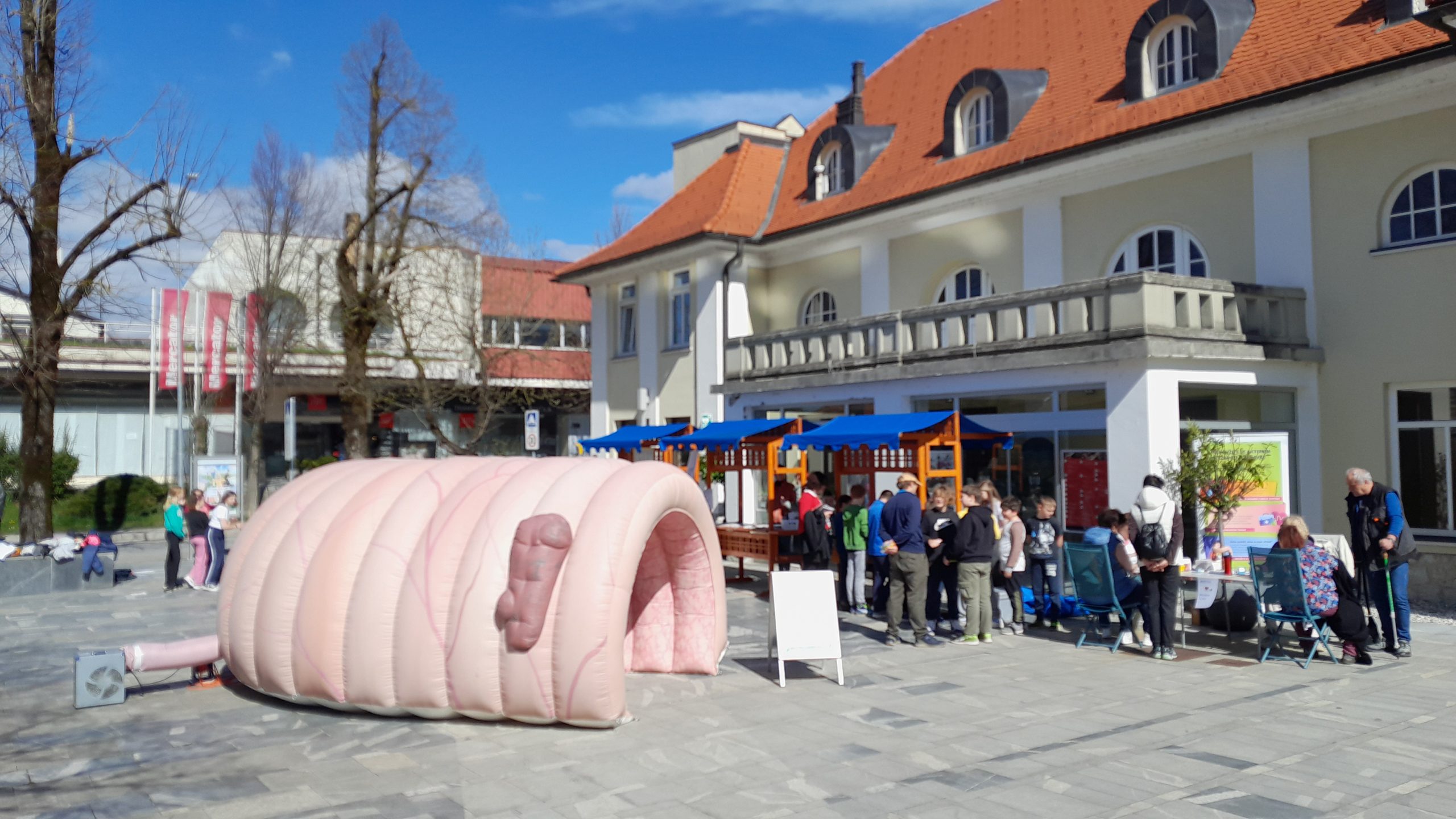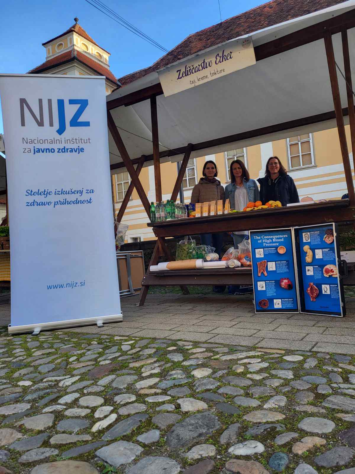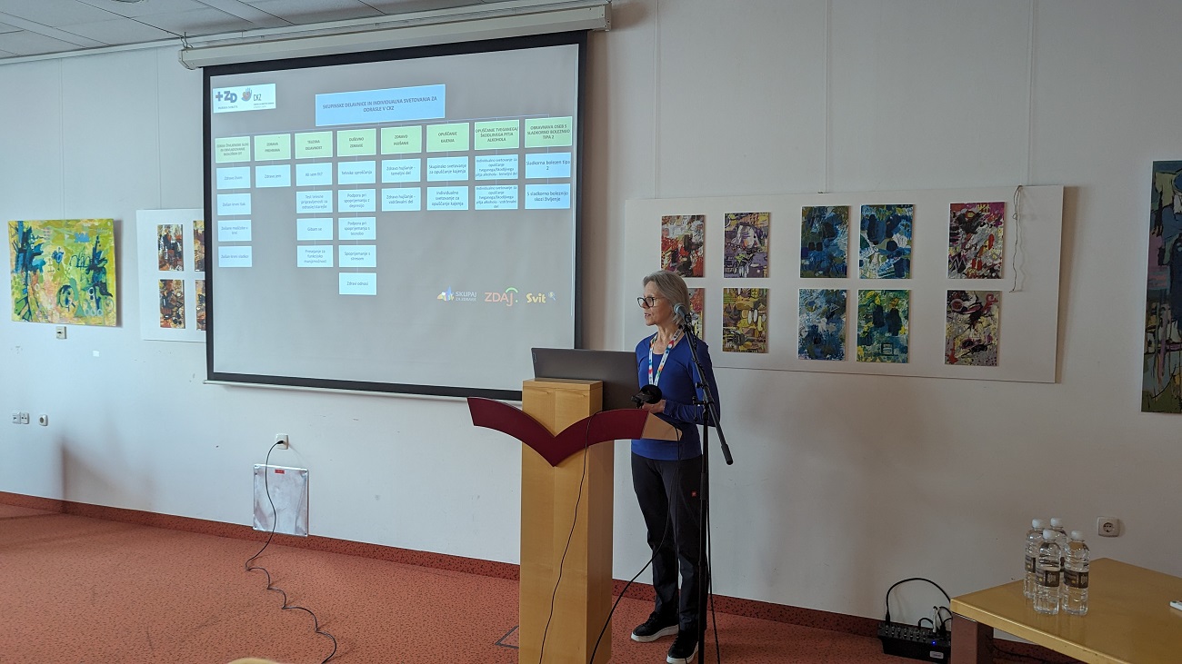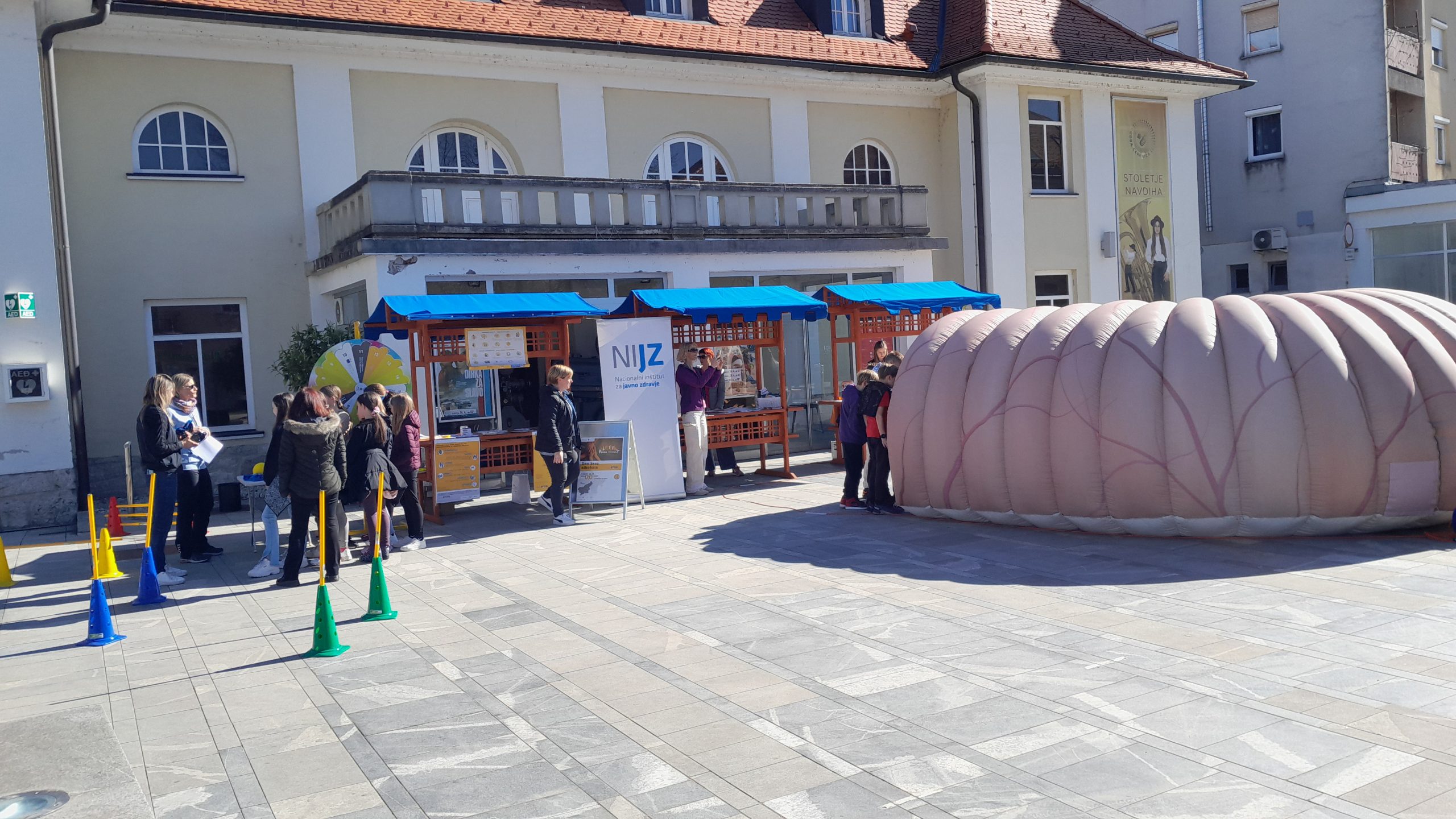 Na ploščadi pred prizidkom smo na stojnicah promovirali zdrav življenjski slog, delavnice v zdravstveno-vzgojnem centru in prednosti življenja brez alkohola. Mimoidoči so se lahko ob kolesu zdravja preizkusili v poznavanju dejstev glede pitja alkohola, lahko so se sprehodili po poligonu za uporabo očal za simulacijo opitosti in se seznanili s presejalnimi programi za raka: Zora, Dora in Svit. Na dogodku smo imeli tudi napihljiv model debelega črevesa, kjer smo mimoidočim predstavljali vzročno povezavo med pitjem alkohola in pojavnostjo raka. Sodelavci zdravstvenega doma so izvajali meritve krvnega sladkorja, krvnega tlaka, delavnice temeljnih postopkov oživljanja, promocijo zdrave prehrane, preventivo na področju energijskih pijač. Stojnice so z zanimivimi in zdravimi kulinaričnimi biseri dopolnila lokalna društva in srednja šola. Uvod v srečanje pa so s skupno vadbo popestrili člani Šole zdravja Gorje in tako ogreli od relativno hladnega jutra prezebla telesa.