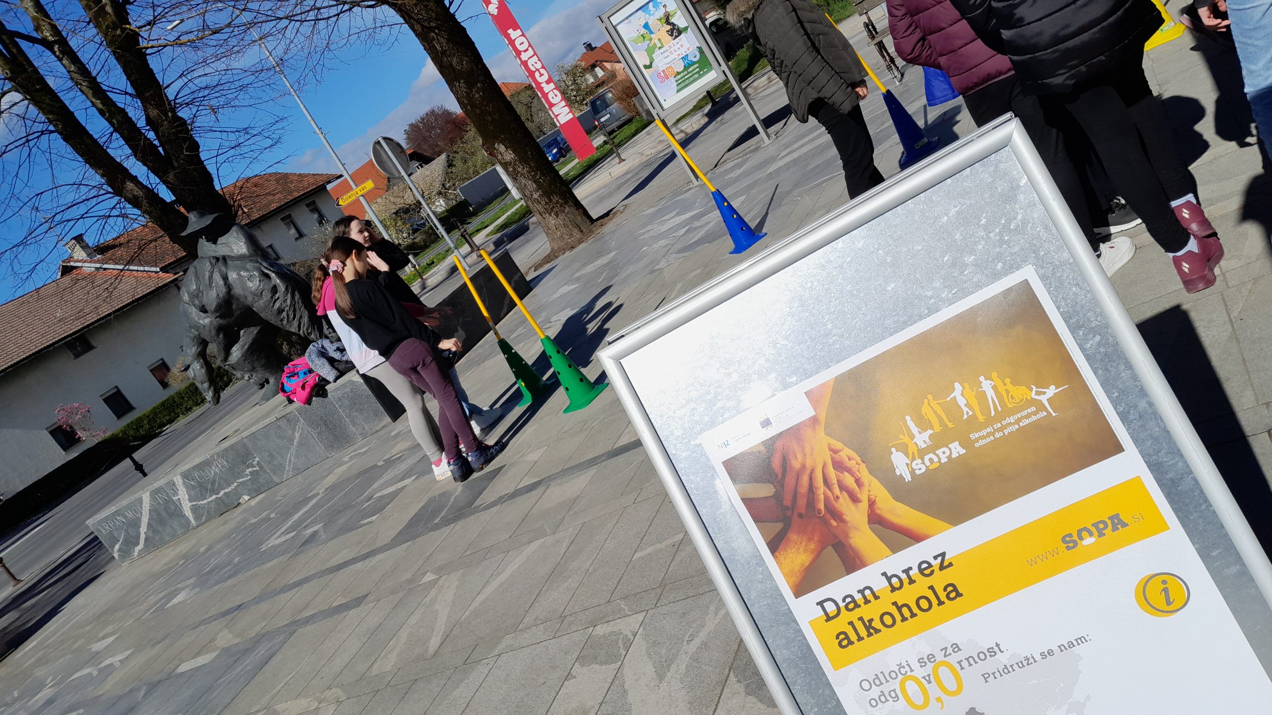 4. aprila 2024 smo v sodelovanju z zdravstveno-vzgojnim centrom Zdravstvenega doma Cerknica obeležili »dan brez alkohola« v Cerknici. V senci spomenika Martina Krpana in njegove kobilice smo na trgu pred Kulturnim domom Cerknica na stojnicah promovirali zdrav življenjski slog, delavnice v zdravstveno-vzgojnem centru in prednosti življenja brez alkohola. Mimoidoči so se lahko ob kolesu zdravja preizkusili v poznavanju dejstev glede pitja alkohola, lahko so se sprehodili po poligonu za uporabo očal za simulacijo opitosti in se seznanili s presejalnimi programi za raka: Zora, Dora in Svit. Na dogodku smo imeli tudi napihljiv model debelega črevesa, kjer smo mimoidočim predstavljali vzročno povezavo med pitjem alkohola in pojavnostjo raka. Sodelavke zdravstvenega doma so izvajale meritve krvnega sladkorja in krvnega tlaka. Naše aktivnosti so lepo dopolnili obiski učencev Osnovne šole Notranjskega odreda Cerknica, ki so pokazali svoje poznavanje zdravega življenjskega sloga. Dogodek je svojim obiskom obogatil član lokalnega kluba zdravljenih alkoholikov, ki je navzočim predstavil svojo popotovanje od treznosti v alkoholizem in nazaj.