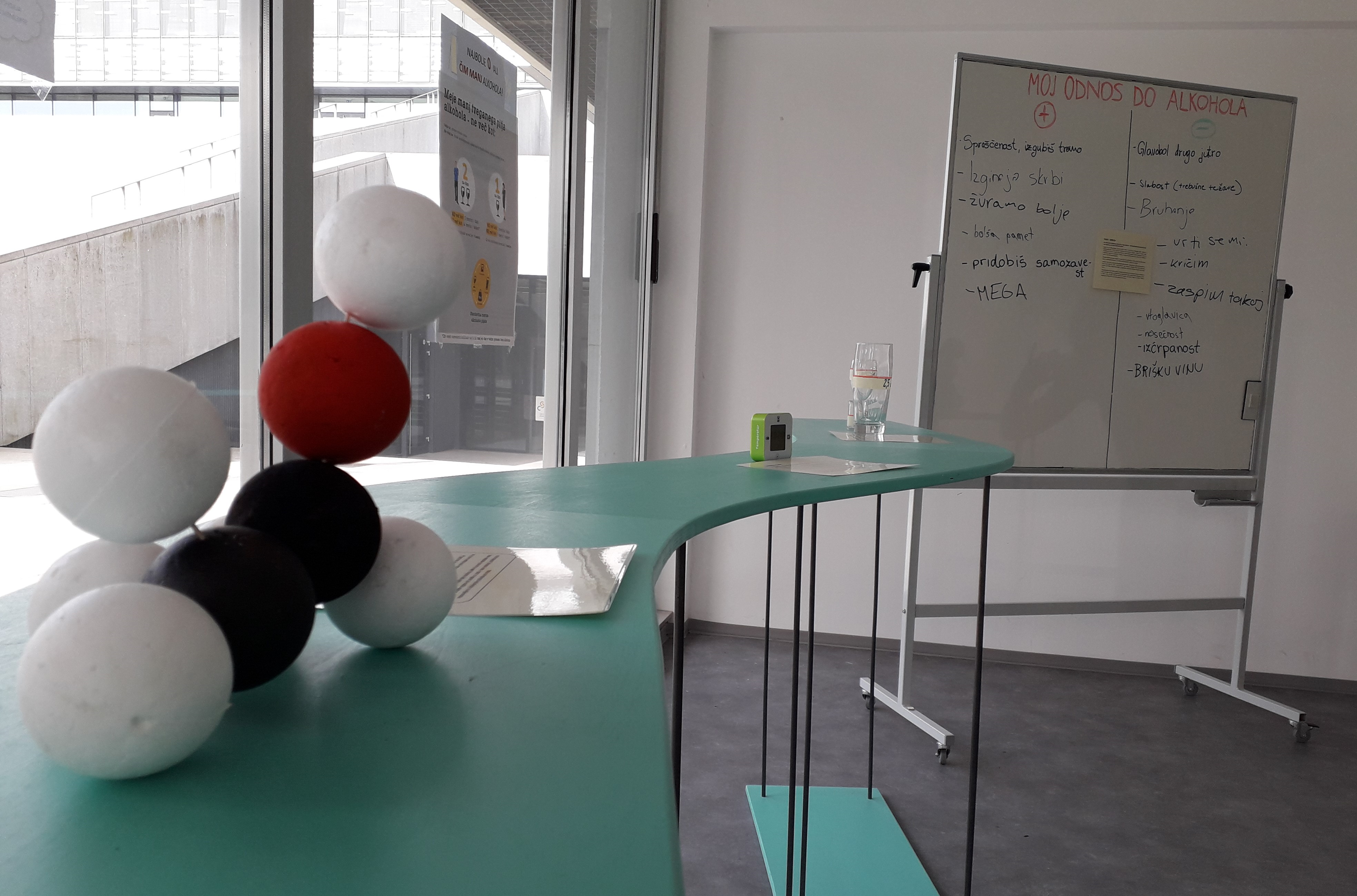 Pripravili smo stojnico in obiskovalcem na sproščen način predstavljali tveganja, ki jih prinaša pitje alkohola ter jih seznanjali s problematiko rabe alkohola v Sloveniji in v njihovem lokalnem okolju. Spregovorili smo tudi o tem zakaj nekateri miti o alkoholu ne držijo. Vsak obiskovalec je prejel majhno uporabno darilce.