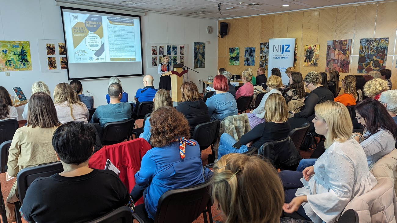 Strokovno srečanje je bilo razdeljeno na dva dela. V prvem delu smo naslovili alkoholno problematiko in obeležili Dan brez alkohola. Dan brez alkohola je obeležitev posebnega dne, ki smo ga začeli organizirati v okviru projekta SOPA – Skupaj za odgovoren odnos do pitja alkohola in ga letos izvajamo že šestič. Ta prvi del srečanja sta posebej obogatili predavanji Sonje Gerič Bevec iz NACOA Slovenija (Društvo za pomoč otrokom alkoholikov) in Sandre Babič, direktorice CSD Pomurje, ki sta vsaka iz svojega vidika predstavili problematiko alkohola v družinskem oziroma domačem okolju.