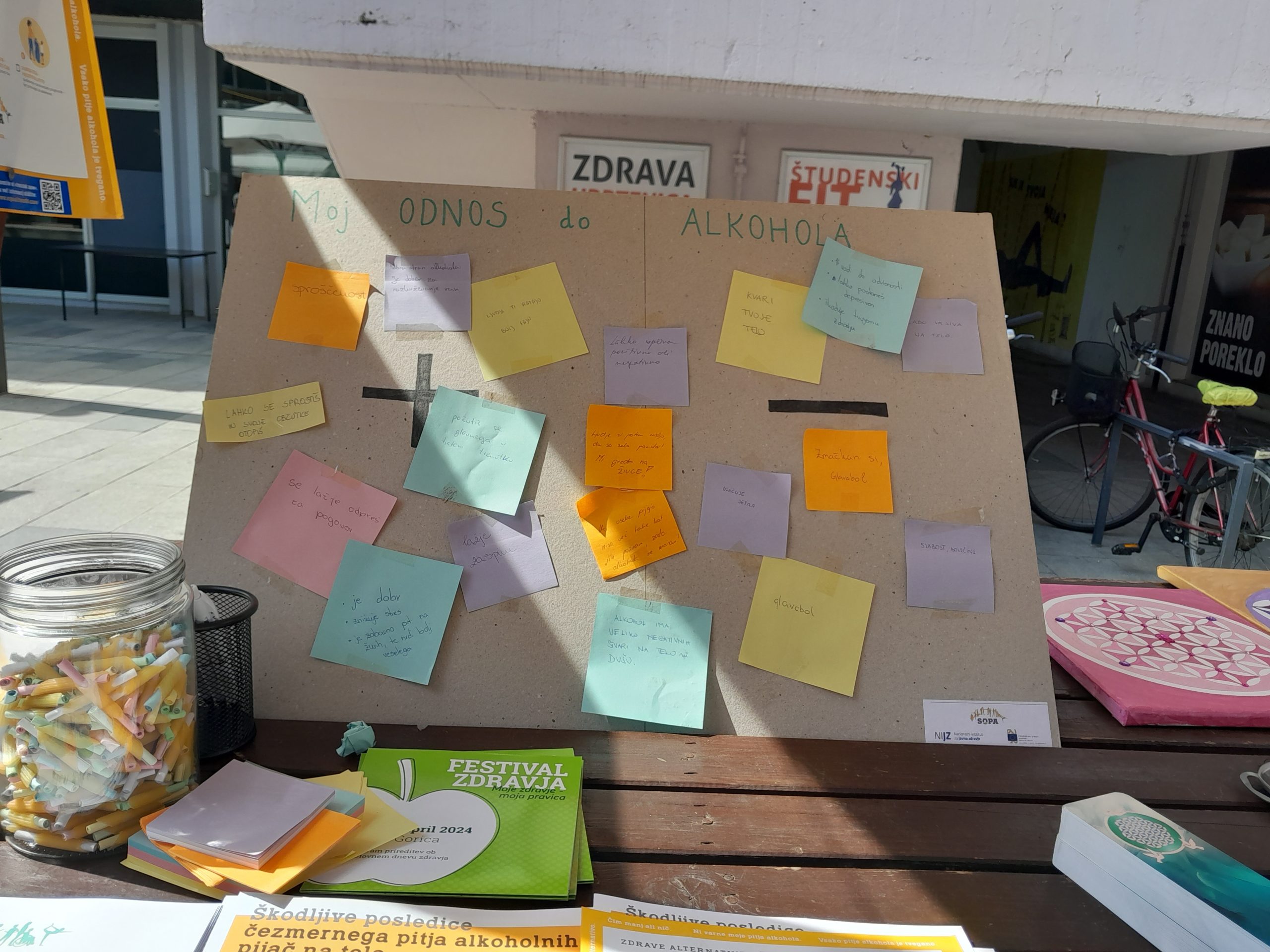 OE Nova Gorica NIJZ je skupaj s podporniki pristopa SOPA iz Zdravstvene regije Nova Gorica, že šestič zapored izvedel medijsko podprt Dan brez alkohola, po zaključeni Karitasovi akciji »40 dni brez alkohola«. Letos smo dogodek organizirali v okviru tradicionalnega novogoriškega Festivala zdravja, v centru Nove Gorice, 8. aprila 2024, od 10. do 18. ure.